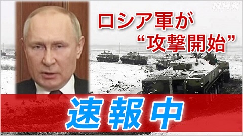 【速報中】ロシア軍がウクライナで軍事作戦 | NHKニュース今朝未明(ウクライナ時間)、プーチンがウクライナに対して大規模の戦争を始めました。ウクライナの複数の都市に空爆が続いています。これは侵略戦争です。ウクライナは戦って、勝ちます。世界はプーチンを止めなければなりません。行動するタイミングは今です。