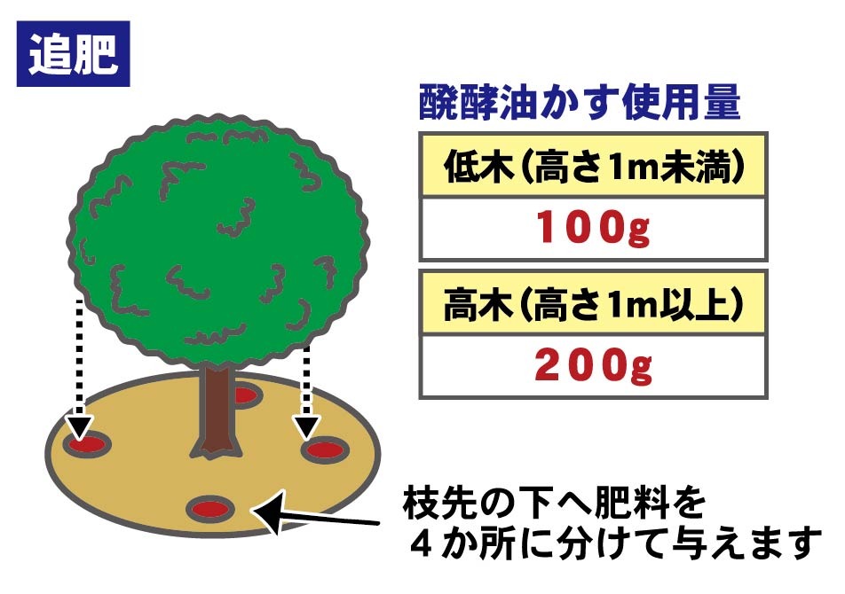 「これをやれば100%効果出て元気になるとは断言できないけど」「やるかやらないかは自己責任」と数本釘差しをされた上で、「軽く周囲から根切りをして、油粕を地面に撒いてやると少しは効果ある、 かも?」とアドバイスを貰ったので、相談に乗ってくれてありがとう料としてその場で発酵油粕を1袋買って帰宅しました。