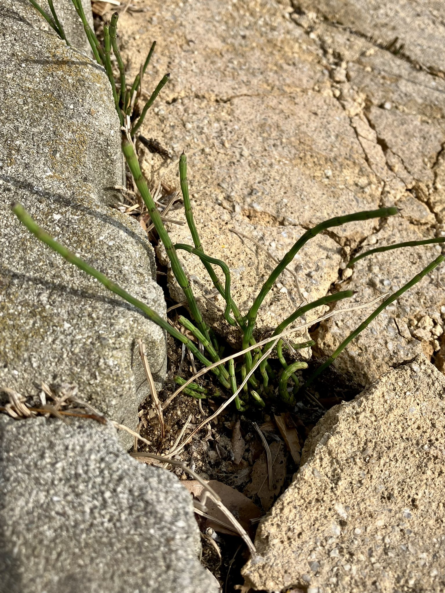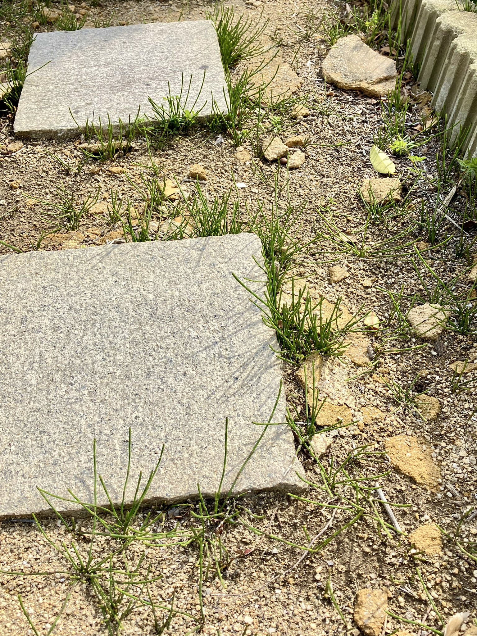 固まる土をぶち抜いて新たな生え場所を作ろうとしてくるイヌドクサ。もう全然普通に割って伸びてきてるの怖すぎる。多分固まる土が経年劣化で脆くなってるせいもあるんだろうけど