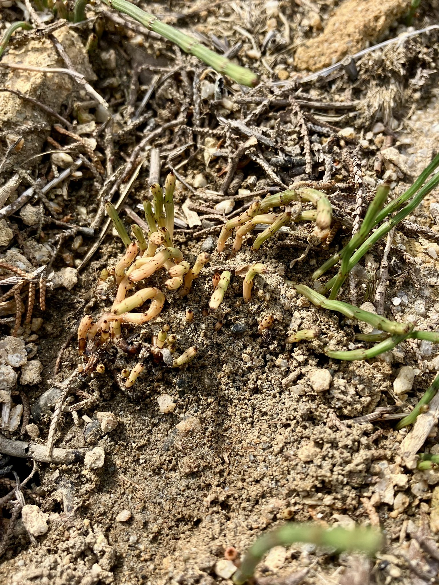 刈ってて1番驚いたのは、カラスノエンドウが生えていた地面が、とても柔らかくて適度な水分があって、ダンゴムシとかがあちこち潜んでいて、所謂「いい土の匂い」がして。これはカラエンさんがもじゃもじゃ根っこで土を耕してくれたヤツですわ~!ってちょっと感動しました。バッタも今年初めて見た。