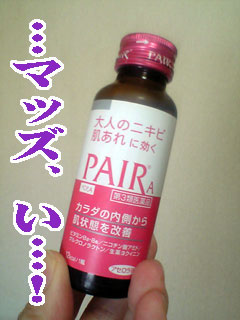 一気飲み出来ないレベルはマズイと認定。あかん。アセロラ味って書いてあるけど、アセロラに謝れなレベルで苦マズイ。まぁ薬と思えば飲めなくもないけど、これでお肌に効かなかったら金返せかもしれない。久しぶりに目尻に涙溜めながら飲み物飲んだわー。笑。