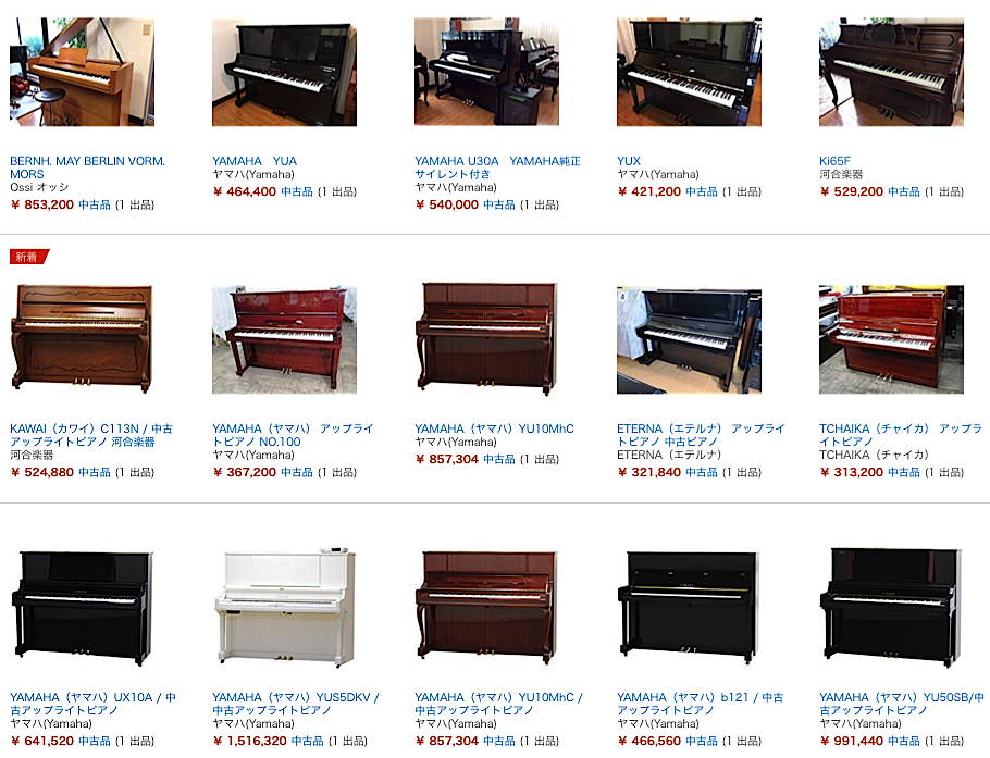 検索してみたけど、いや知ってたつもりだったけど、中古でもスタンドピアノ(アップライトピアノっていうのか)すっっっっっっっげぇ…!!高いな…!???