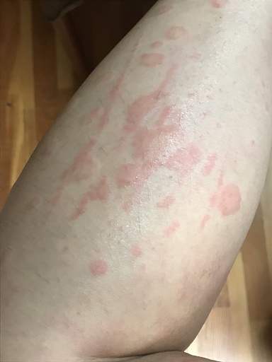 ※ミミズ腫れみたいな線状の赤いヤツは爪で掻いちゃった跡。
