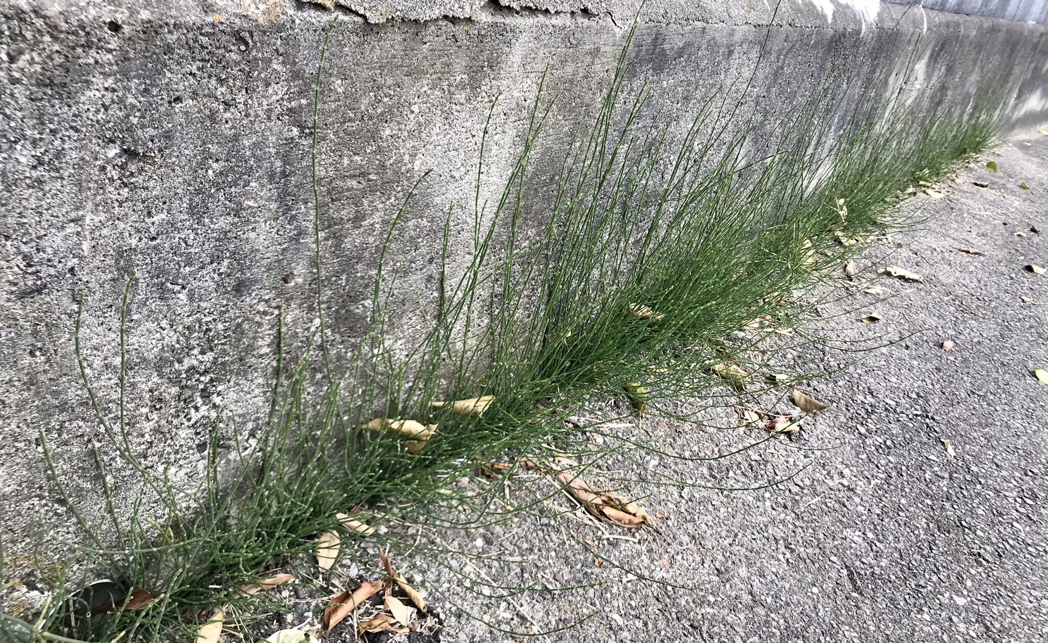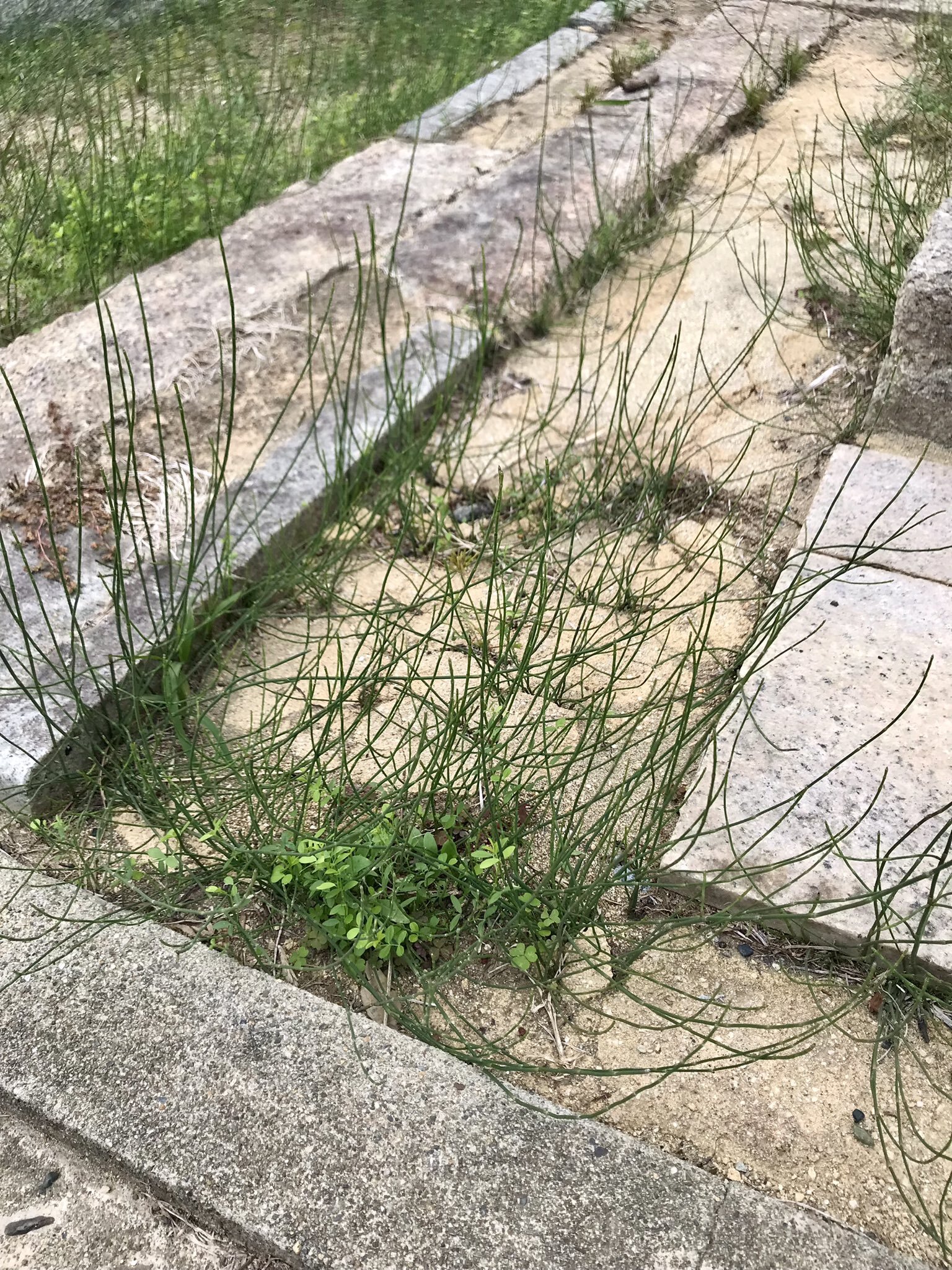 後、我が家の庭、一部を石やブロック、固まる土で通路みたいに作ってあるんですが、その隙間からにょりにょりイヌドクサが生えており。石やブロックが邪魔で根っこ(地下茎)から掘り起こす事も出来ず、固まる土に至ってはイヌドクサに力負けしてあちこち割れて隙間から生え伸び放題でもうこれ全部取っ払って土掘り返して地下茎除去出来ればどんなに楽か…!ってなってます。