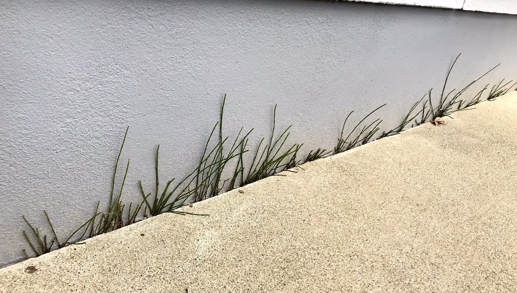 家の基礎んとこ。イヌドクサが強すぎて、基礎の隙間だけじゃなく犬走りを割ってひび割れの隙間からも伸びてた。職人さんがひび割れも補修してくれてたんだけど、補修材を突き抜けてまた頭が出てきてるんだ…イヌドクサ…外壁塗り終わったの11/6よ?20日足らずでこんな状態。元気すぎだろ。