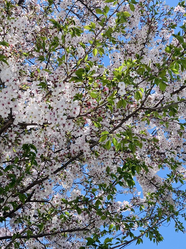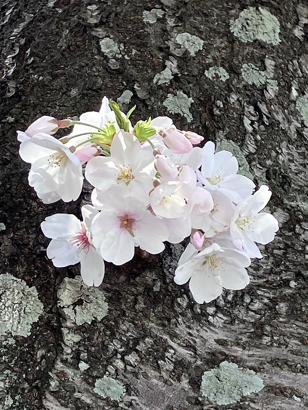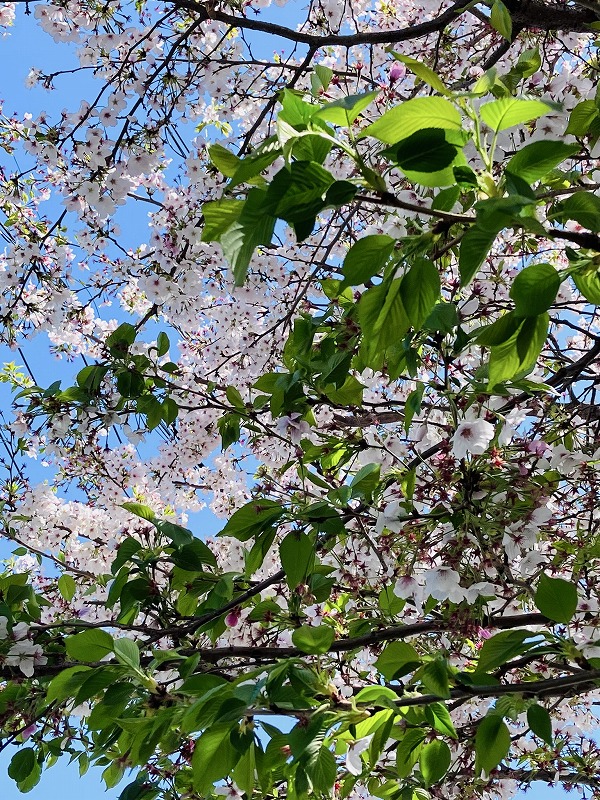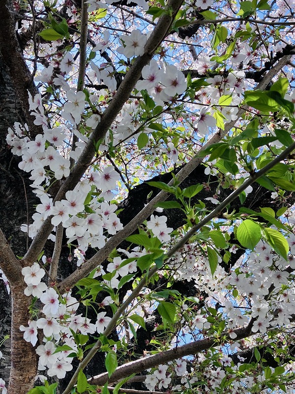 この辺りの枝は週末の荒れ模様で花が落ちてしまって、葉桜になりかけ。